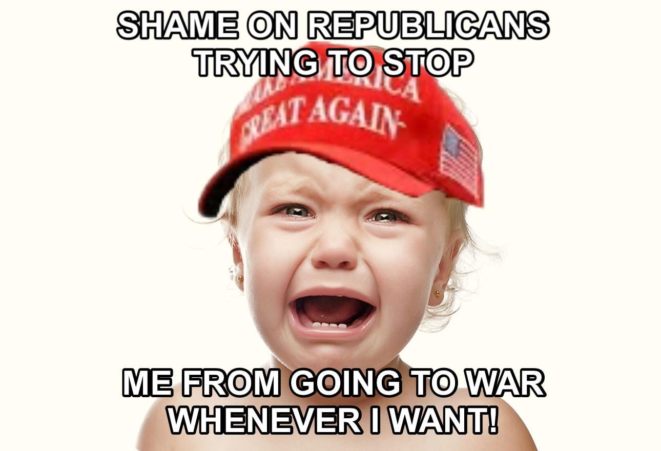 trump whines ~~as republicans back advancing war~~ because someone told him ‘no’.
