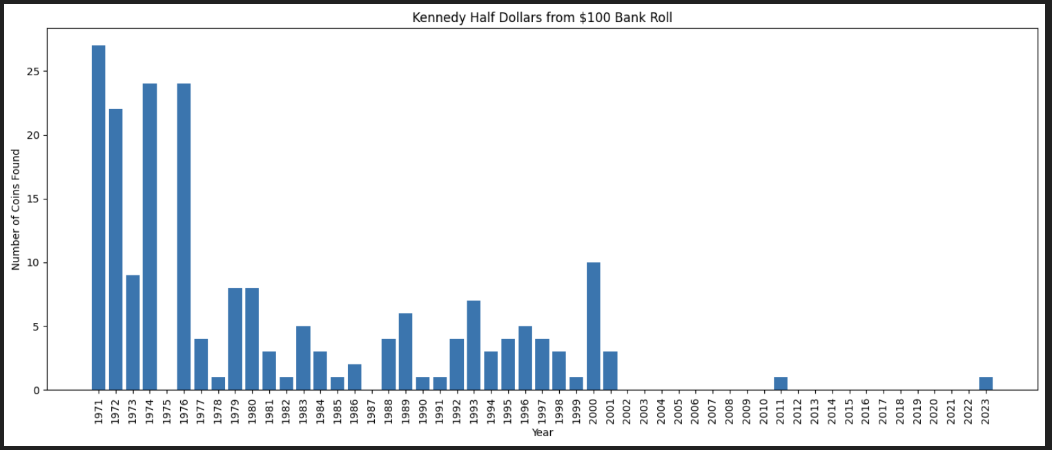 Seems this distribution is fairly common among pickers. The goal unfortunately was to find pre 1970 coins as they have silver. Now i have a lot of large coins and am hoping something like my car gets towed as I want to use them on someone that upsets me.