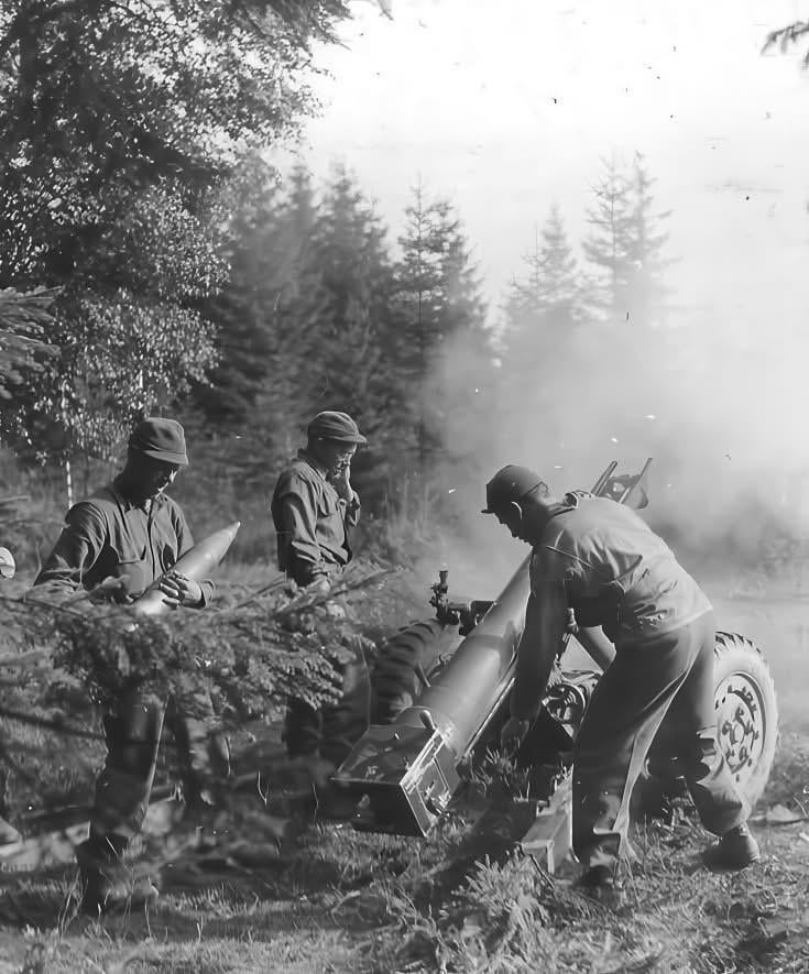 1st US Army 105mm Howitzer Crew in Action Wenau Forest, Germany 1944. [735×885] by UrbanAchievers6371