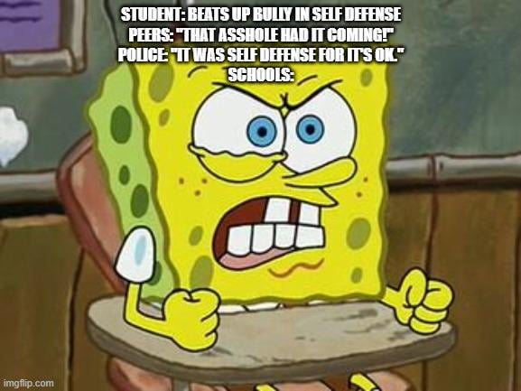 the only thing zero tolerance policies achieve is making the victim give their bully an even more brutal smackdown. if they’re gonna get disciplined for defending themselves, they’re gonna make it worth their while.