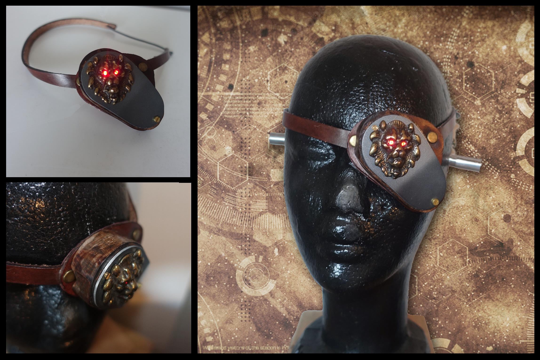 Found an old metal lion head somewhere, used to be a button or something. Turned it into an 80s villain eye patch with some vege-tan leather and rosewood.