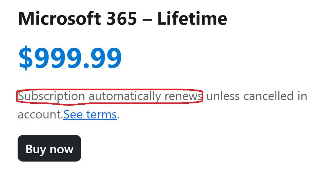 I would be more focused on the part where you are getting scammed as Microsoft doesn’t offer lifetime subscriptions.