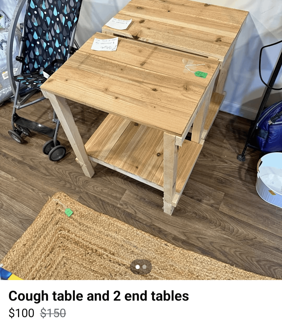 2. Also $100 for something that looks made out of old pallets that was made in a teenage woodwork lesson where the teenagers were more interested in trying to injure themselves with power tools than care about the outcome?