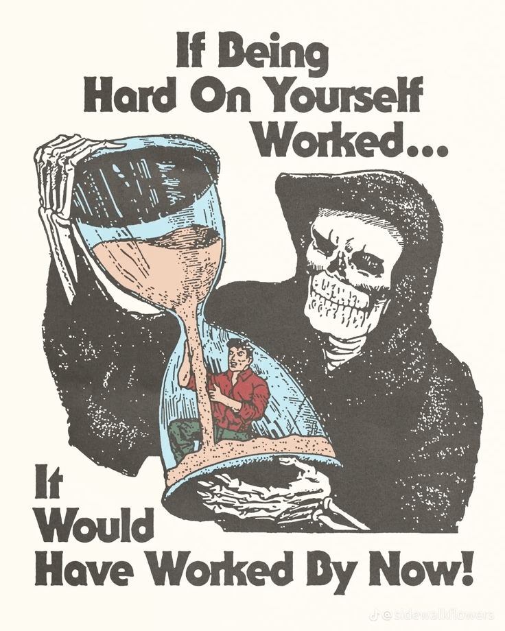 If your boss yelled at you every time you weren’t perfect, would that work? Why do you think it would work if YOU’RE the one doing the yelling? Don’t abuse yourself. Be your own cheerleader [image]