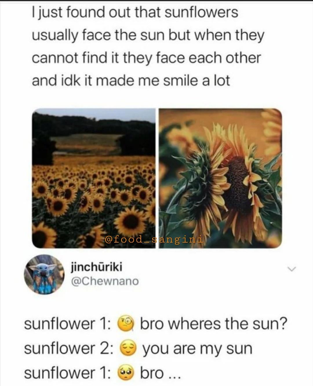 Resiideent on January 26, 2026 12:37 pm No, unfortunately this is a myth. They just face down at a 90 degree angle in a random direction. In a field of hundreds of flowers, at least some will be randomly facing each other.