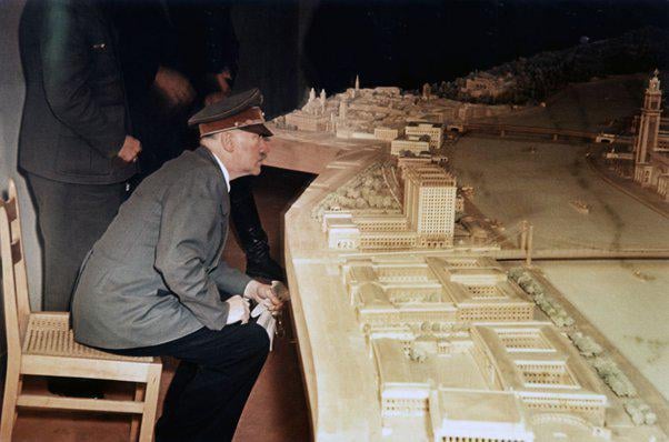 Hitler looking at a model of Linz in the Reich Chancellery Basement in Berlin, February 9 1945[602×398] by PestoBolloElemento