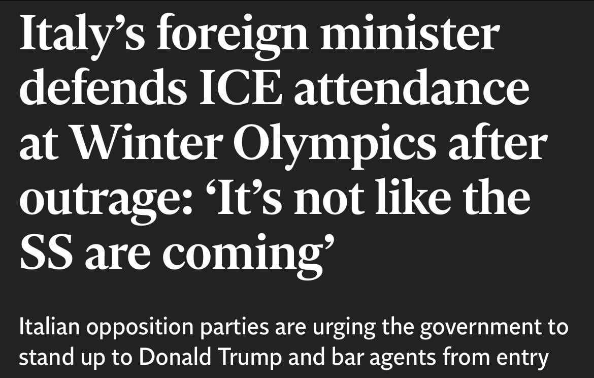 Part article: “ Foreign minister Antonio Tajani said on Tuesday that the agents attending the Games would not be “those that are on the street in Minneapolis”, as the US reels from the fatal shooting of two people by ICE in the city this month.”
