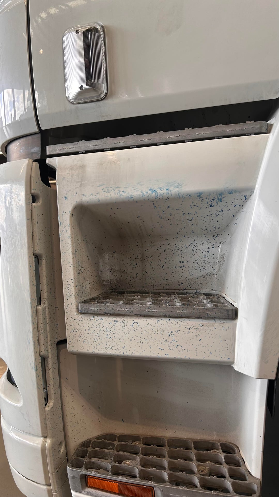 So I work a dealership as an apprentice, the team that I worked with ran out of work so I was sent to pre delivery for the day. I was given a Freightliner Cascadia and got to work, checking stuff etc. I grab the small grease gun and start greasing kingpins and the power steering when the grease runs out. I go to the gantry that has its own grease gun so I can refill the smaller grease gun. I should mention the pump that pumps the grease is pneumatic. I go to check whether the gantry has grease by lightly squeezing the trigger but it doesn’t budge, this would indicate that the grease gun is at a very high pressure. I point the nozzle down into the gantry oil catch, I should point out that the nozzle is also on a little pit of hose. I go to squeeze the trigger again but it was too stiff to squeeze with one hand so I use both hands. The sudden release of air and grease caused the nozzle to flick up suddenly launching a Smurf coloured sneeze of grease onto the poor Fuso Shogun on the other side of it. Using rags and soap I was able to clean it up nicely. To make matters worse that truck was due to go out onto the showroom mere moments later