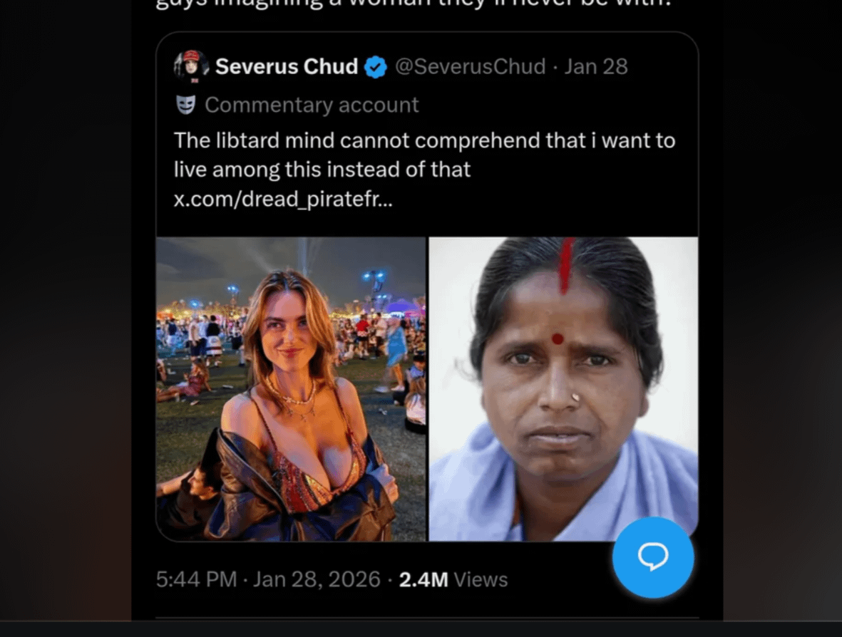 Someone did a reverse image search of the lady on the left and traced the image to a porn site. The post then makes sense since it tracks with typical incel porn-addled behavior that has little capacity for rationality