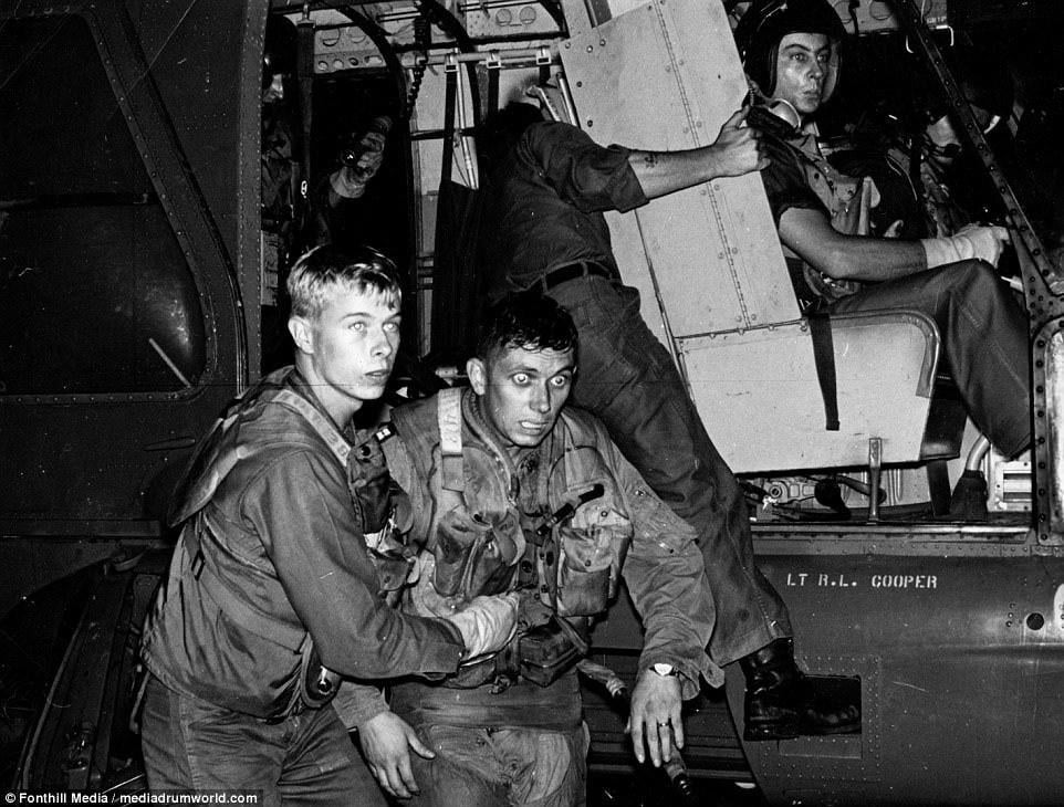 Pilot Victor Vizcarra, after being evacuated from a jungle landing site. After ejecting, his flame-engulfed F-105 fighter-bomber passed beneath him as he parachuted and crashed into a mountain. Vietnam, 1966. [962×730]