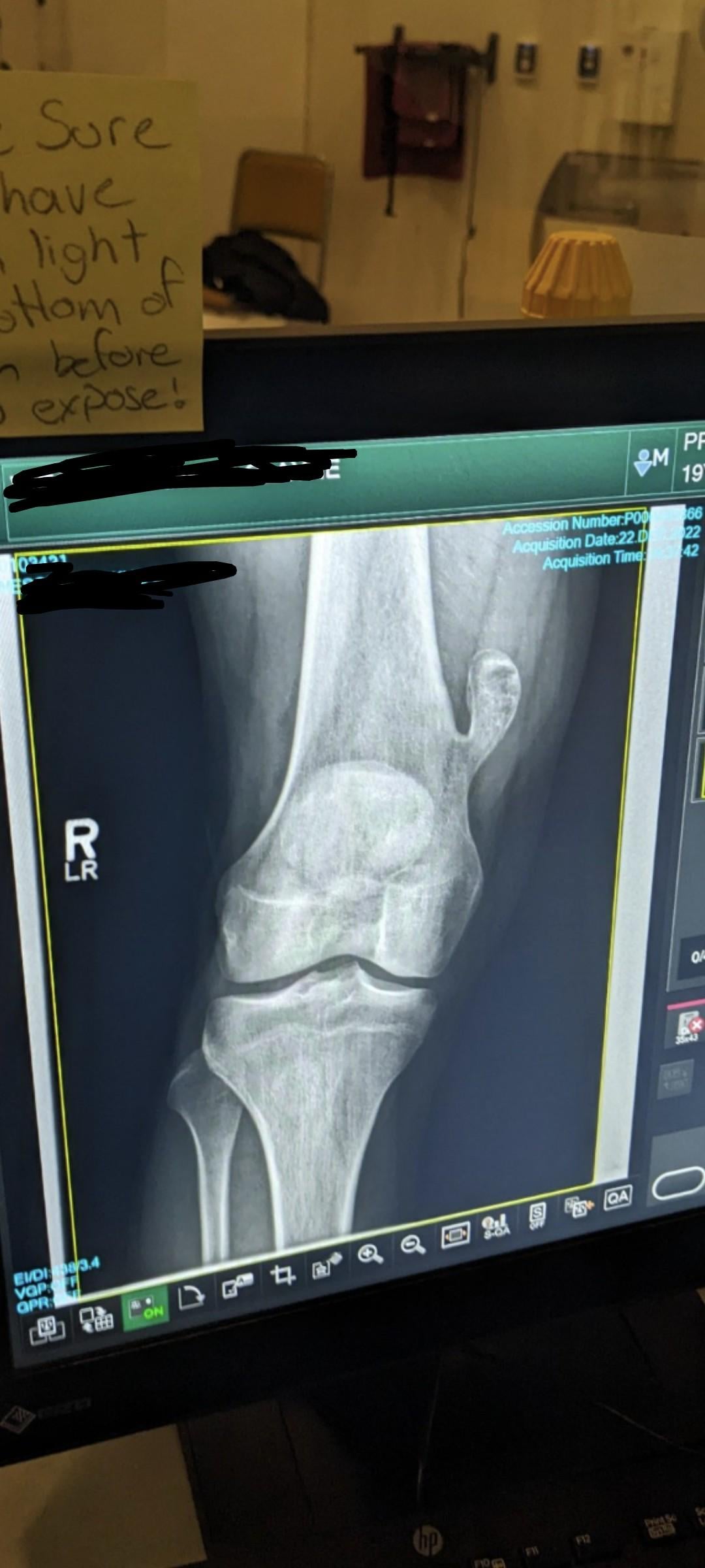 I had one of those as a kid. It got to be 3 inches long growing like a candy cane down my tibia. My siblings liked to call me “three knees” because it looked like I had another kneecap below and to the side of my actual knee. Though it was first noticed when I was 9, they waited until I was 12 to take it off so that it moved far enough away from the growth plate. They were a little worried it might turn cancerous, so they did take it off, which I was glad because I hated looking like I had deformed leg.