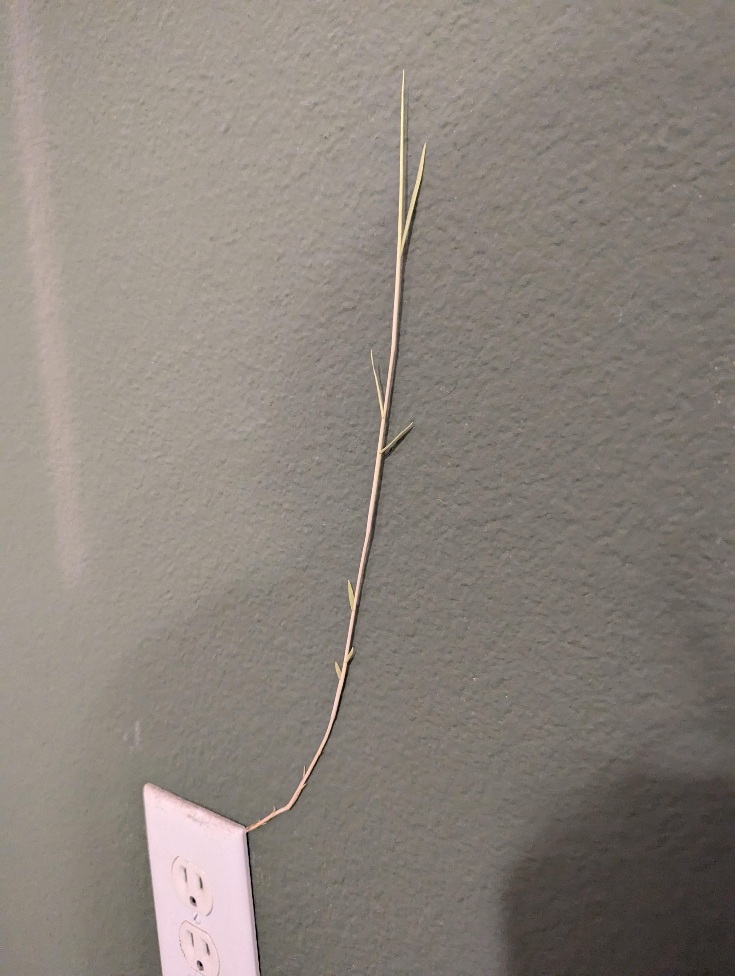 Moved our bed to find a piece of grass growing out of a hidden outlet.