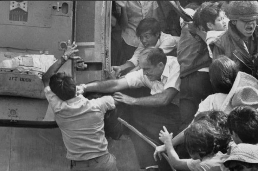 “Frequent Wind” – the evacuation of Americans and friendly Vietnamese by helicopter from the embassy grounds. Helicopters flew for almost 24 hours, and at 3:45 a.m. on April 30, Kissinger ordered the evacuation of only Americans – there was almost no time left, the city had almost fallen. The last helicopter departed at 7:53 a.m. 978 Americans and about 1,100 Vietnamese were evacuated, leaving 420 Vietnamese behind on the embassy grounds.