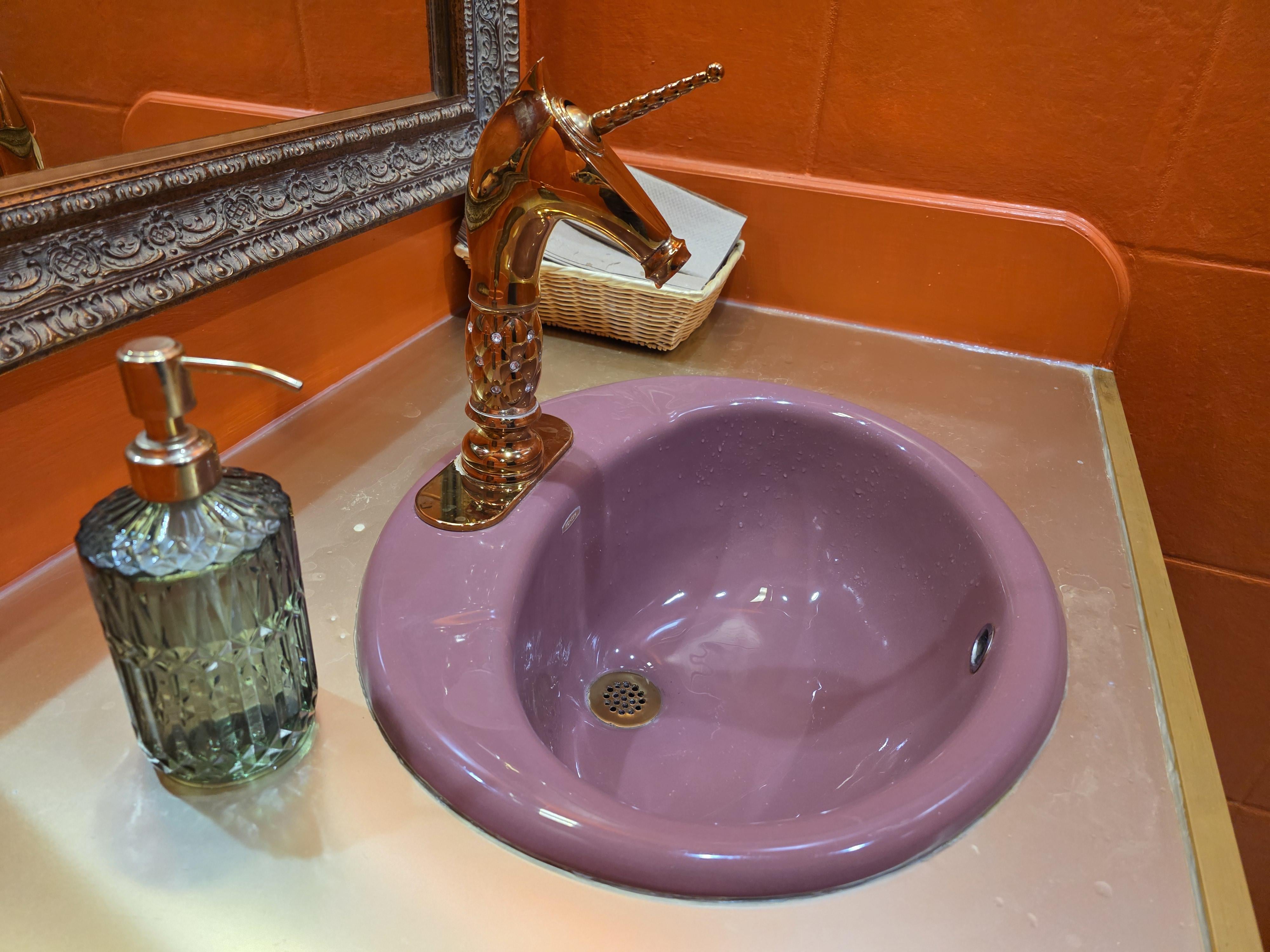 I realize it’s a novelty sink, but I assume this is in a cafe or some such place. It is a really fun design, and I prefer it to the overly-square shaped faucet set too near the back to get my hands in.