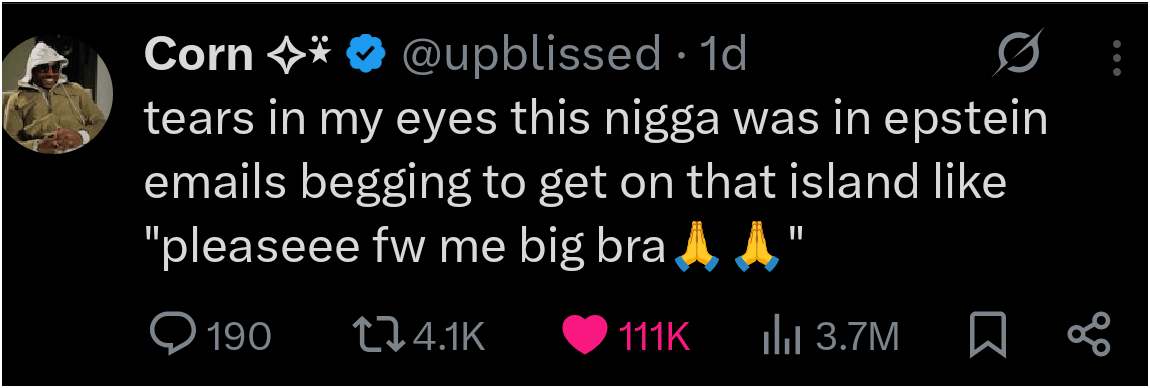 8. him crashing out because he was the one guy Epstein wasn’t trying to blackmail is almost valid