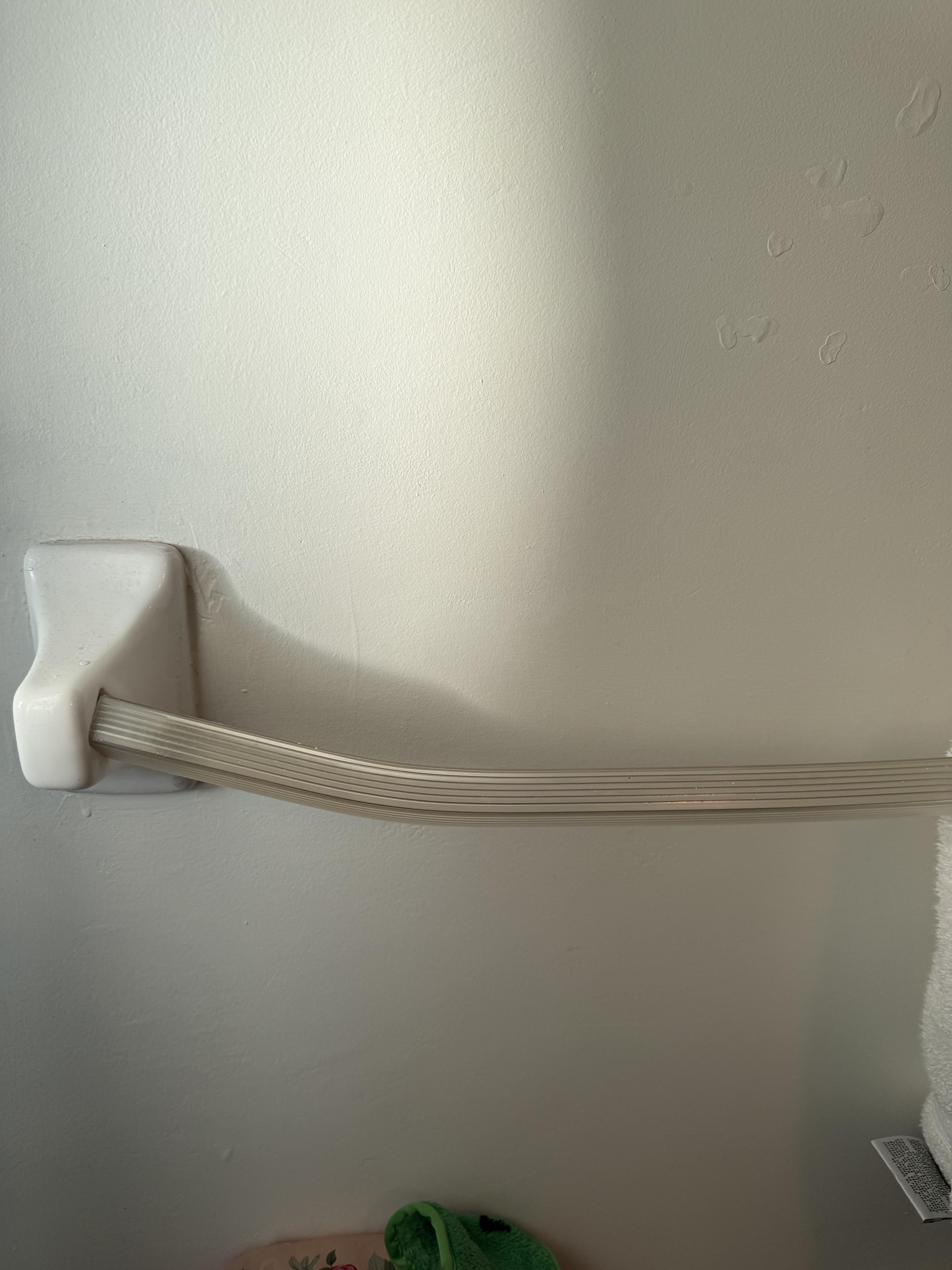 IF it is plastic then its plausible that a super hot towel could soften it enough to bend under the weight of just the towel. However if that is the case then upgraded towel bars were needed before this ever happened.