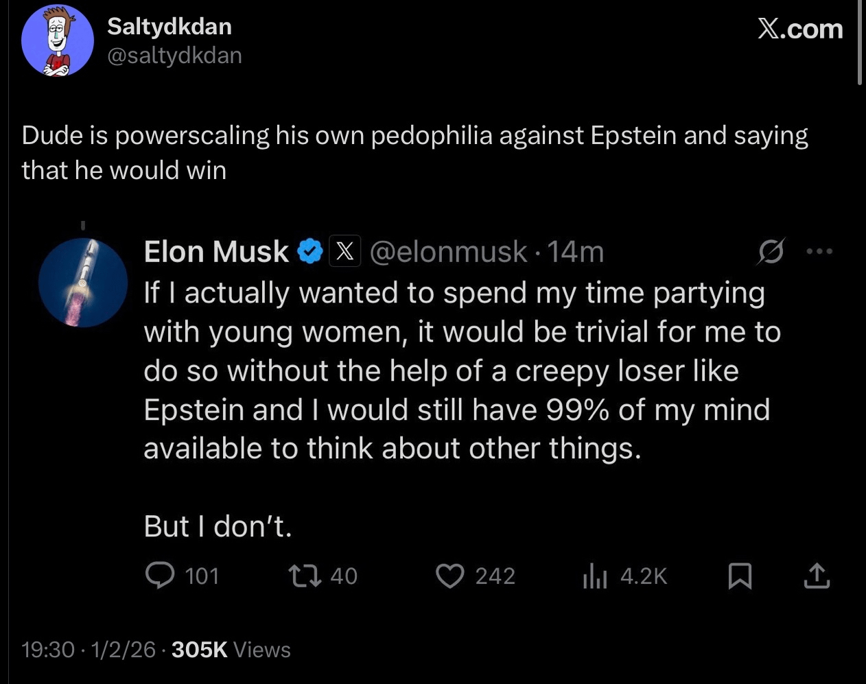 “I don’t need a creepy loser like Epstein to party with little girls …. that’s why I’m friends with Donald Trump now!”