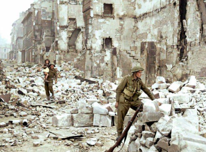 British soldiers rescue a girl in a devastated French city, 1944. [661×489]
