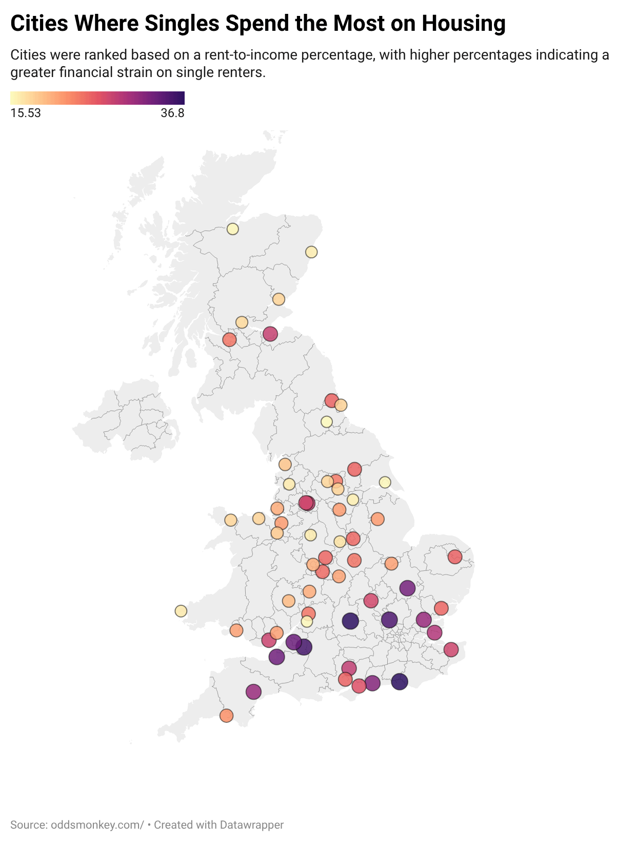 [OC] British Cities Where Singles Spend the Most on Housing (2026)