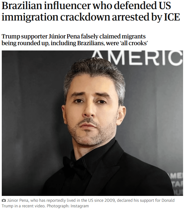 Edit: never mind. Found [it](https://www.theguardian.com/us-news/2026/feb/02/rightwing-brazilian-influencer-junior-pena-arrested-by-ice)