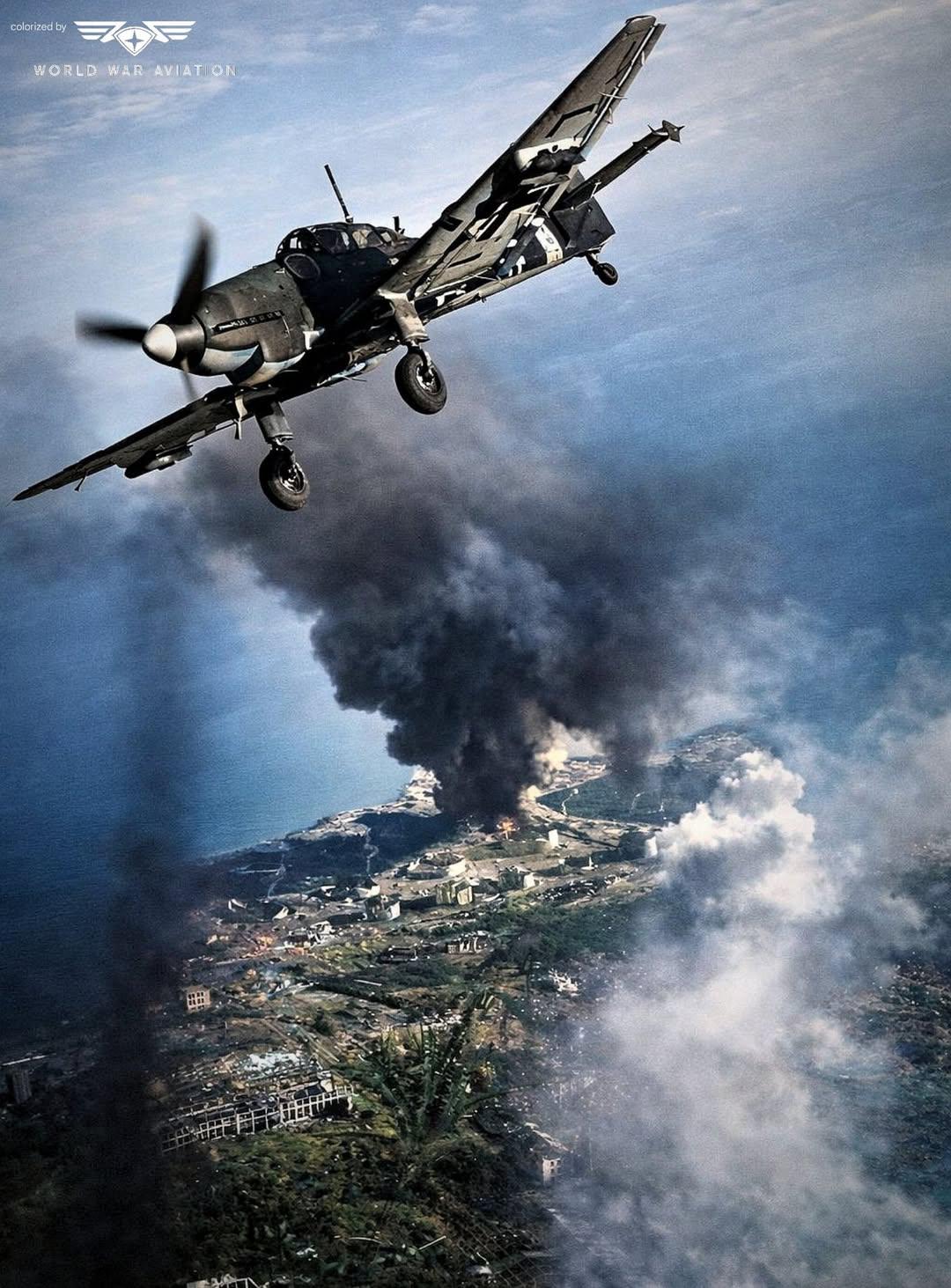 German Ju-87D Stuka dive bomber flies over the burning ruins of Stalingrad. 1942.[1080 × 1463] by Suspicious-Slip248