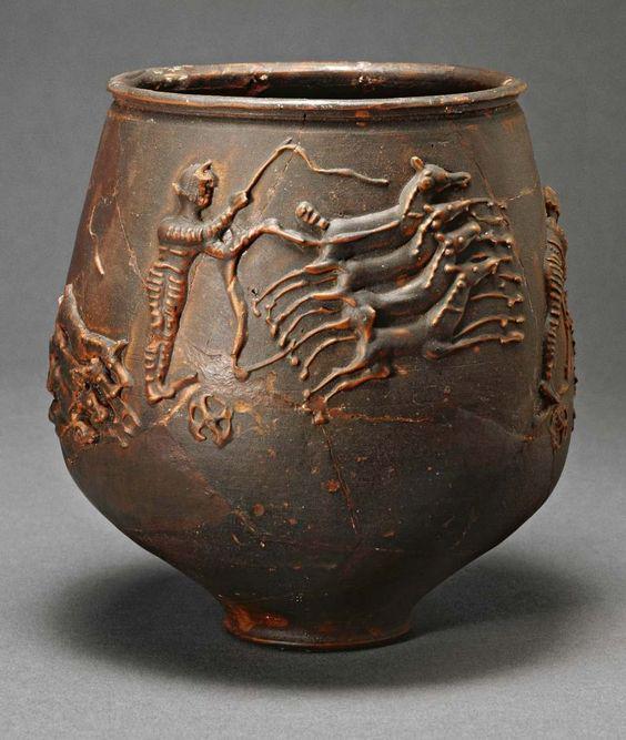 Roman vase from Colchester, showing charioteer racing his quadriga. [564×667]