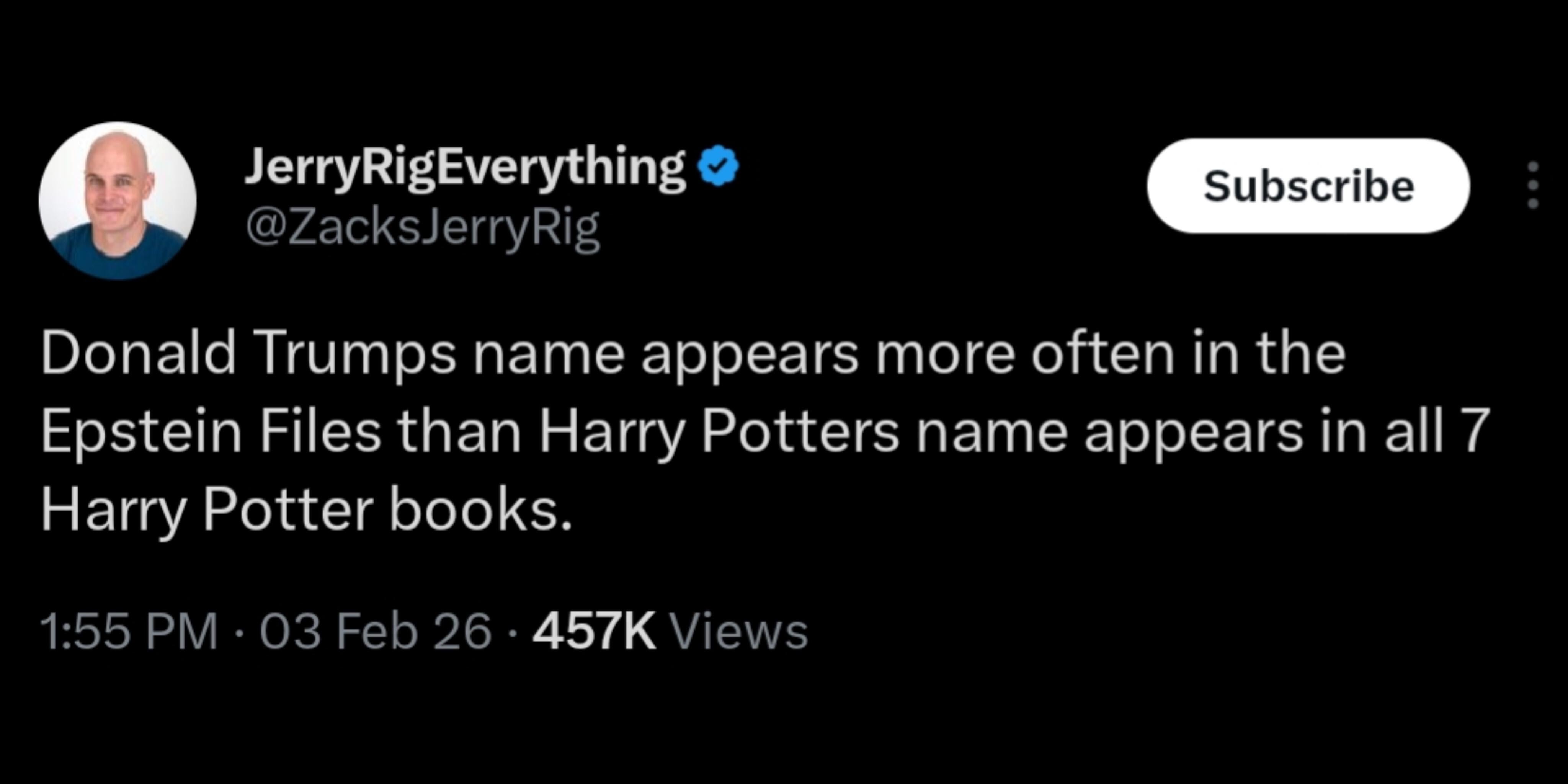 4. This has to become a thing. “Donald Trump’s name appears more often in the Epstein Files than (fill in the blank with something different but accurate)”