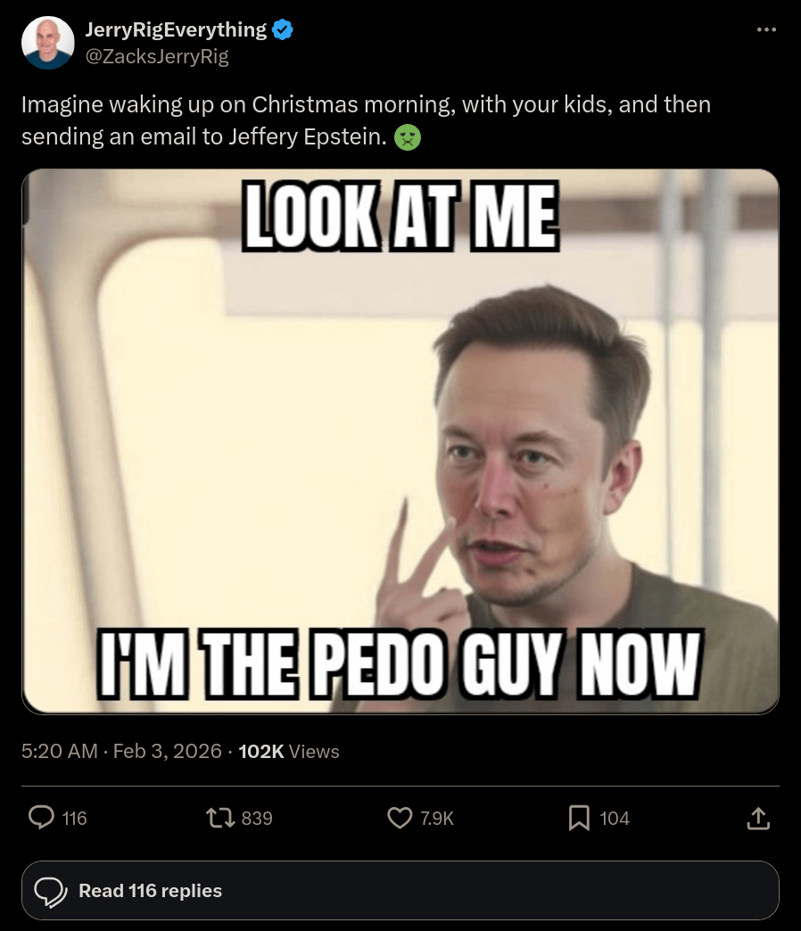 “I was only e-mailing him to make sure I wouldn’t accidentally get invited to this island, you guys” Elon on his emails to notorious child sex trafficker Jeffrey Epstein.