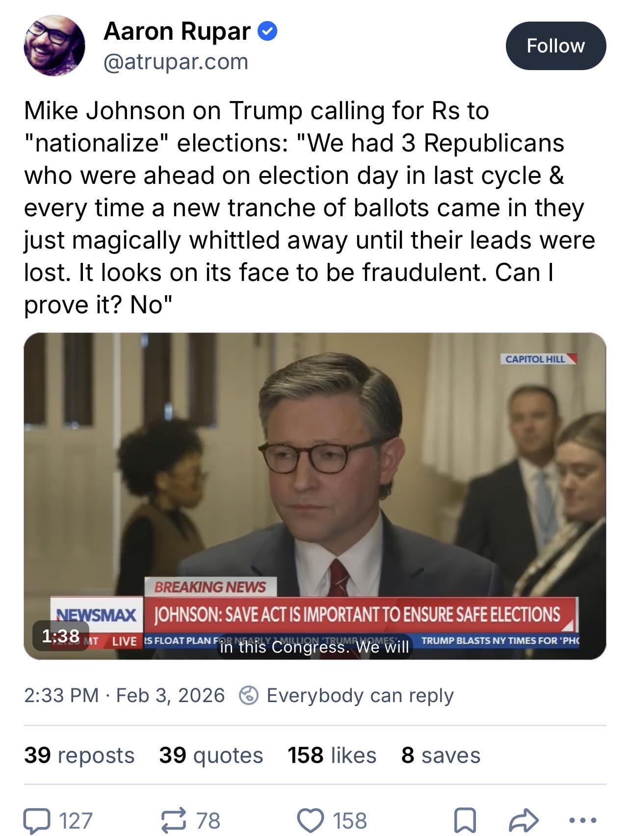 Mike Johnson is probably the most evil competent person on the planet. If he applied half of his energies toward justice and passing laws for the American people, we could be living in the Star Trek universe.