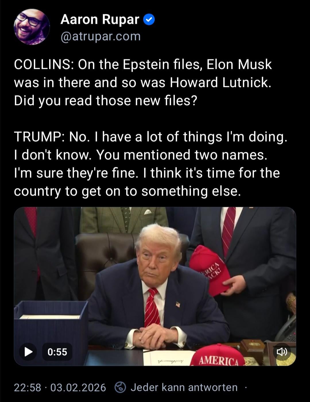 I’m too busy to see the stuff about me I know already is in the Epstein files because I was there, and I definitely don’t have dementia like Joe Biden so I clearly remember.