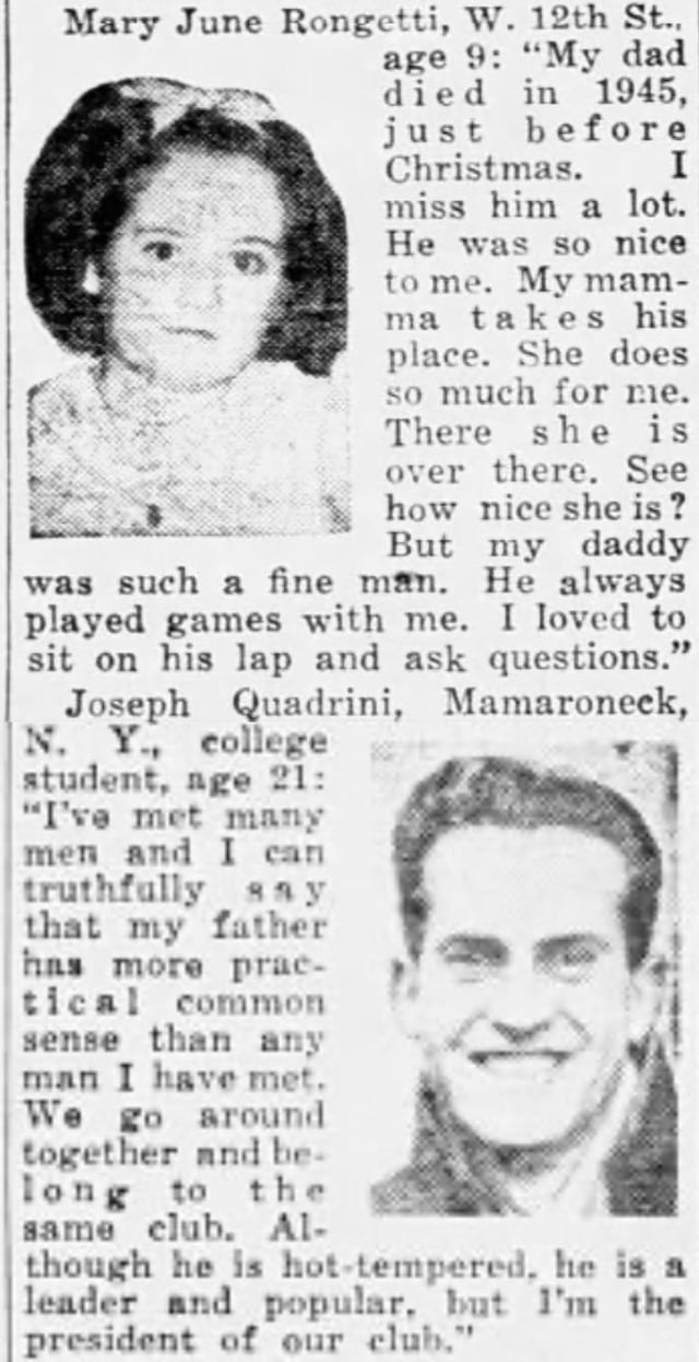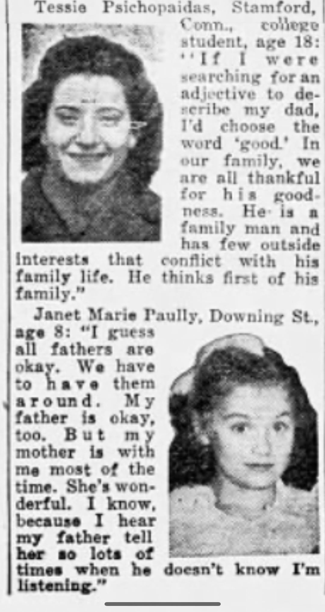 Inquiring Photographer: “What do you think of your dad?” Dec 24, 1947.