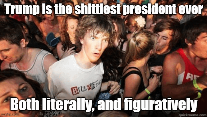 Once upon a time, Trump was so shitty that he crowned himself king of shitters got on a plane to show the people how much he can shit out.