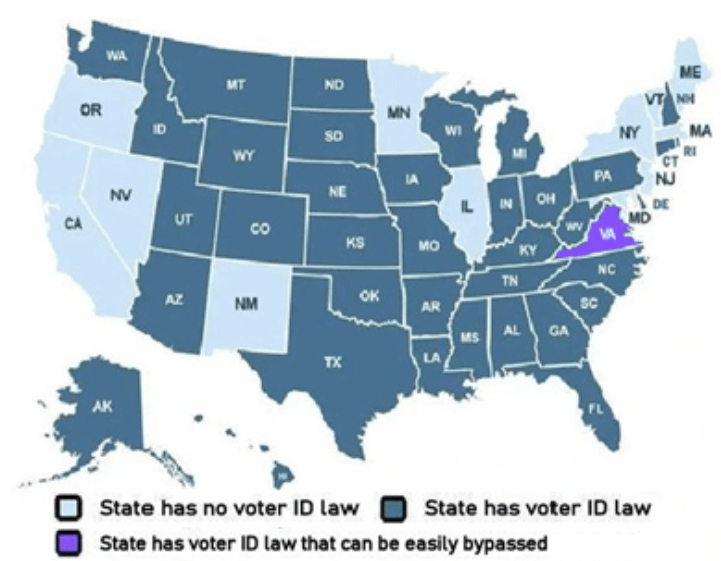 18. It’s also a lie. My state (PA) is listed as having a voter id law and our policy EXPLICITLY states that *photo id is not required to vote* in person and a polling place and that poll workers *should not* be asking for one.