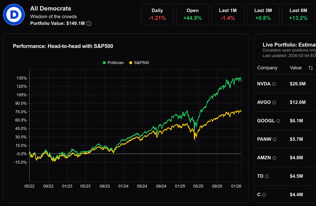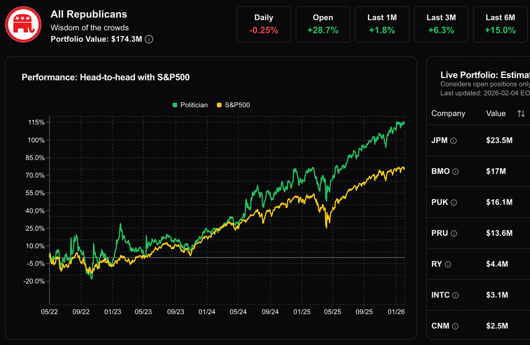 - Returns (since May-2022): Democrats: +131% / Republicans: +115%