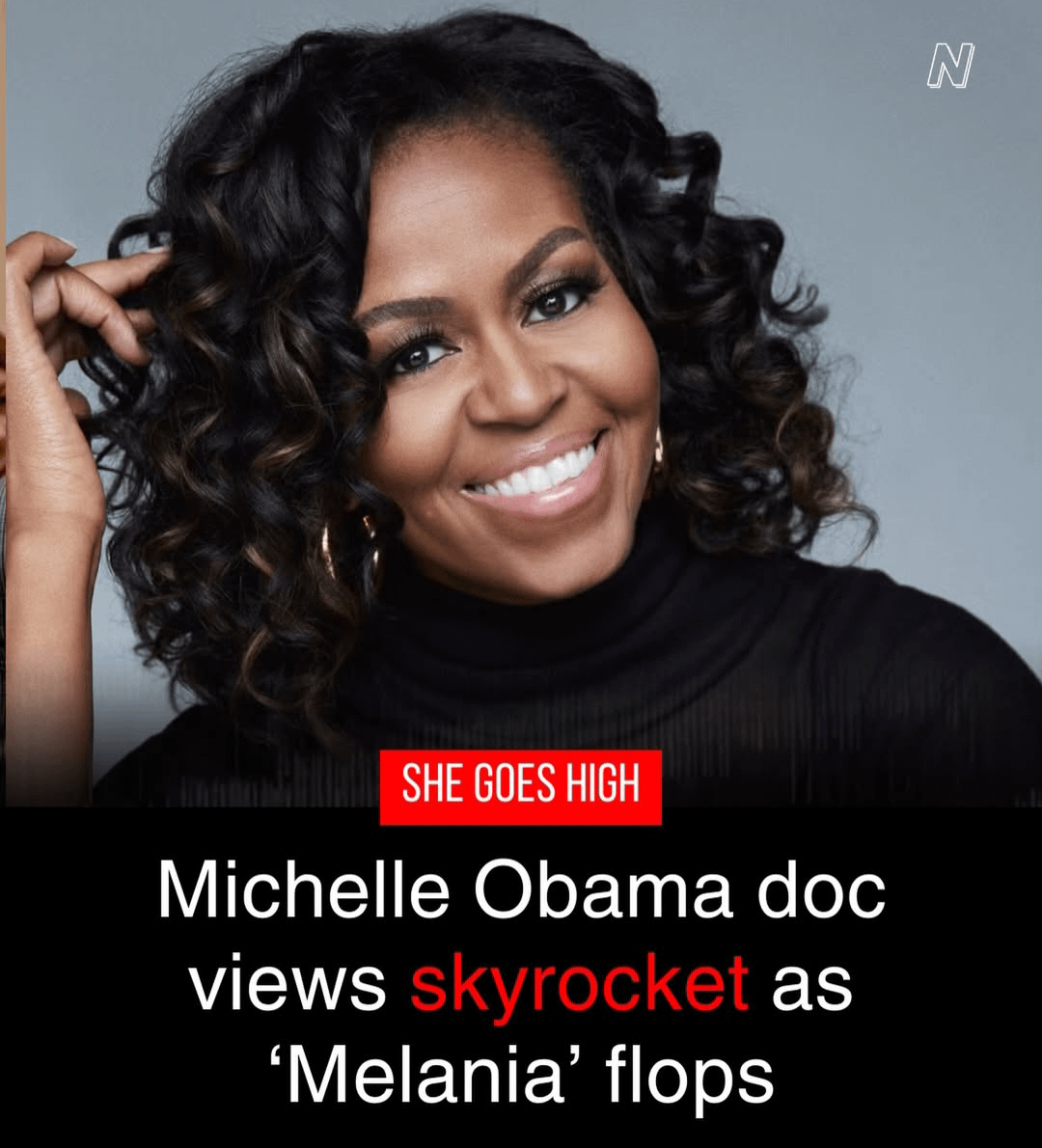 Michelle Obama's 2020 documentary Becoming saw a 13,000% spike in views—jumping from 354,000 minutes watched to 47.5 million minutes—over the same weekend Melania Trump's new vanity project hit theaters.