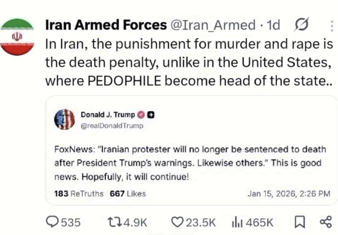 2. I’m sorry but that’s such bullshit. Of course there are also pedophiles, rapists and definitely murderers running Iran.