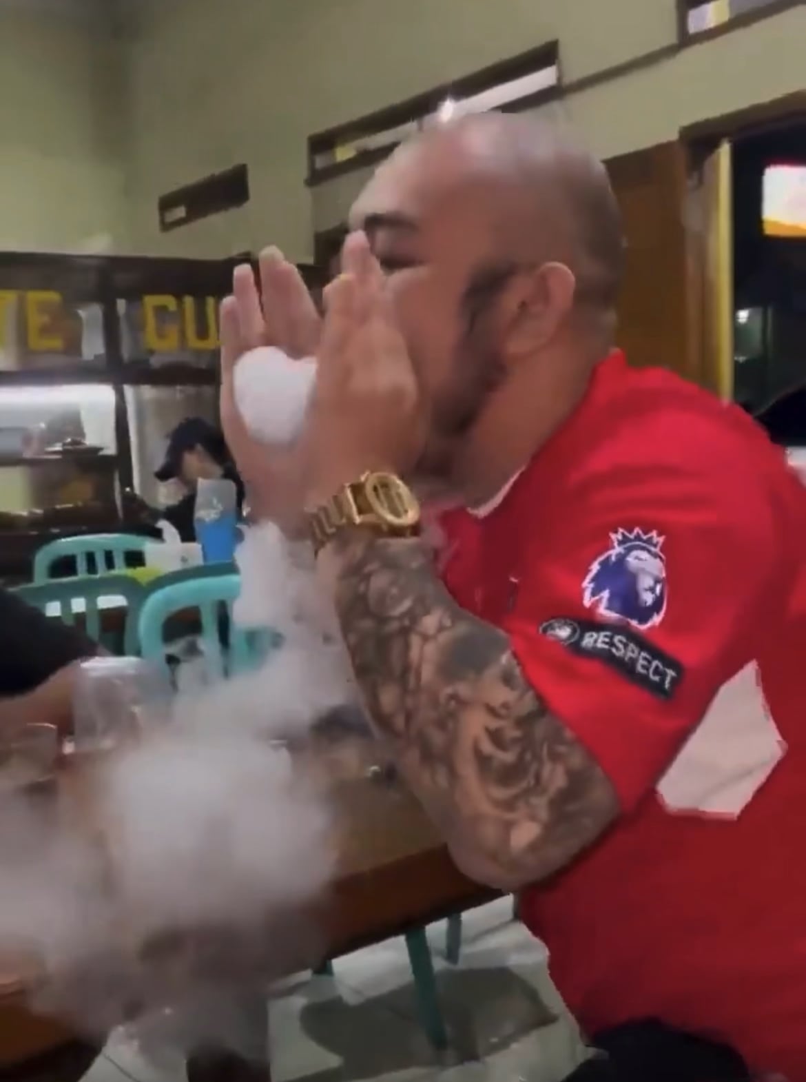 To be honest, the thumbnail looks like he was eating sound and foam was coming from his mouth.