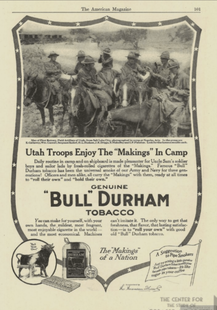 A 1916 “Bull” Durham Tobacco Advert.