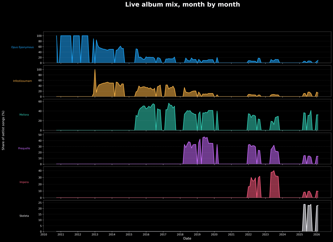 – Ritual (Track on Opus Eponymous) has appeared in 92.1% concerts (appearing 885 times!)