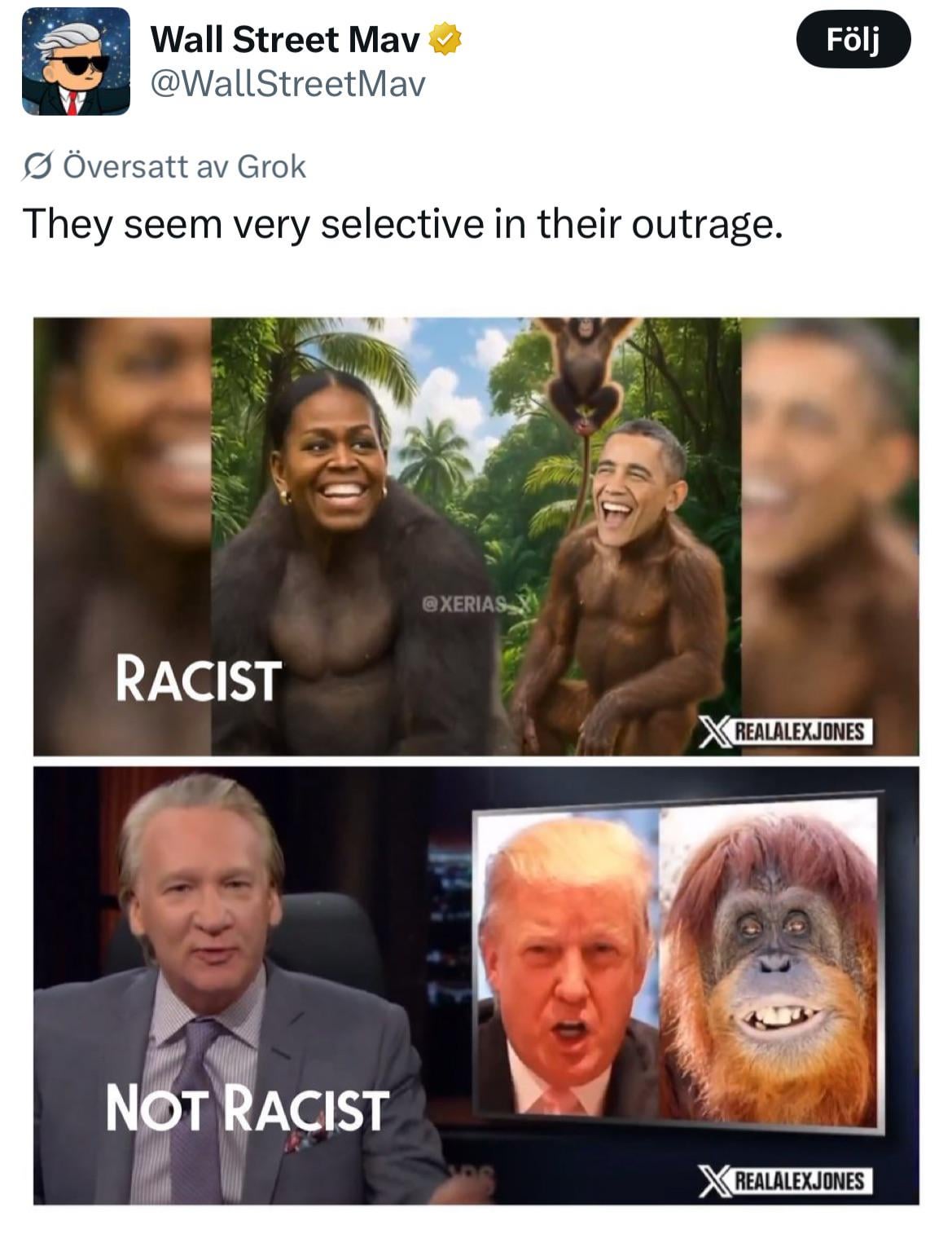 The other compares an over-tanned white guy, which was his decision, to an ape