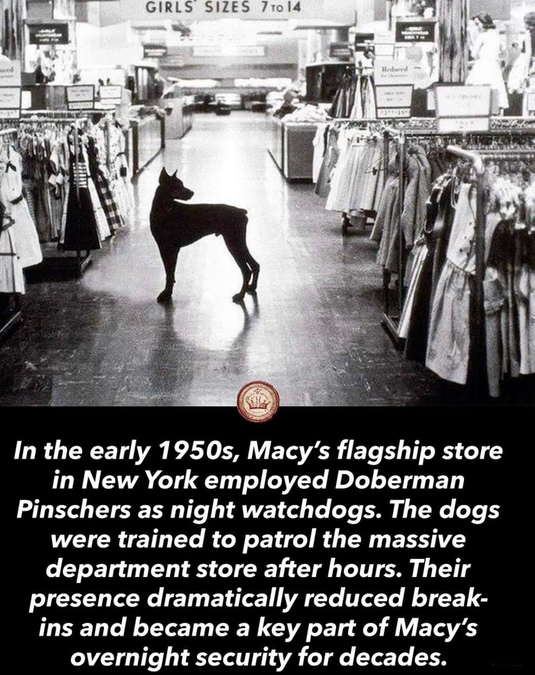 In the 1950s, Macy’s used to employ Doberman Pinschers as night watchdogs