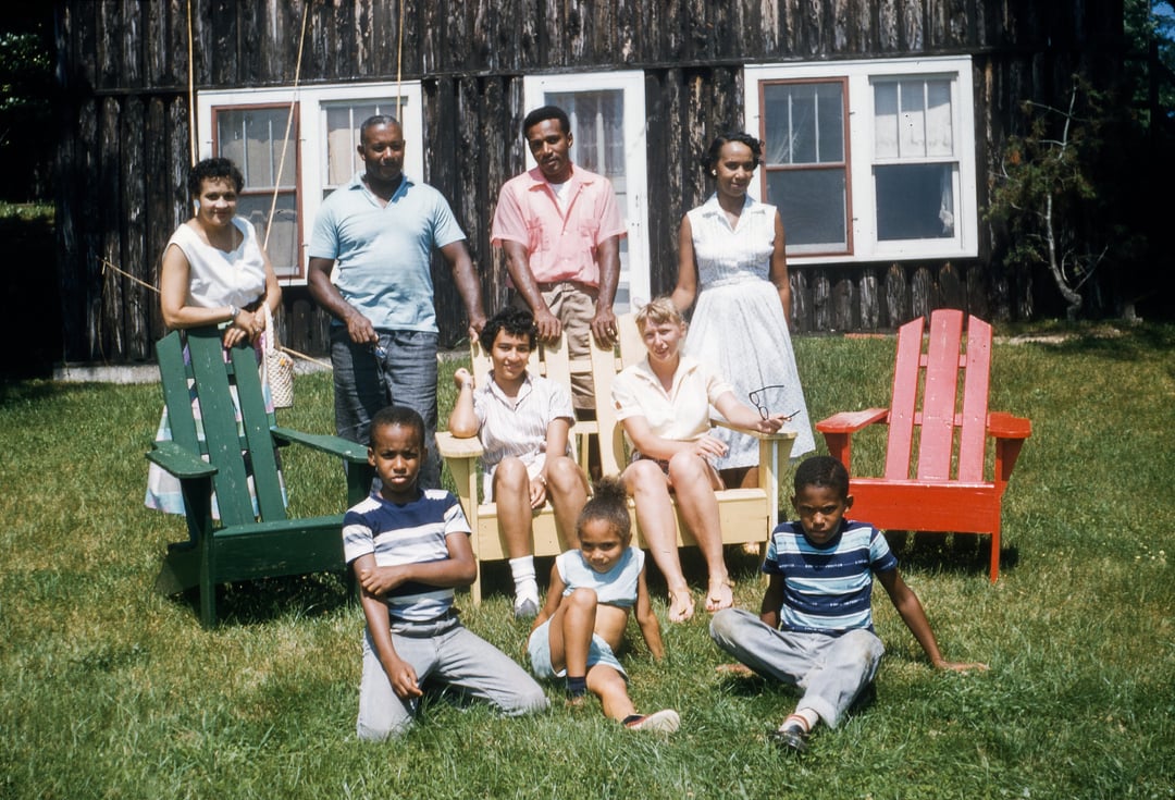 Photos of a nice family and friends at what looks like a cabin, circa 1950s
