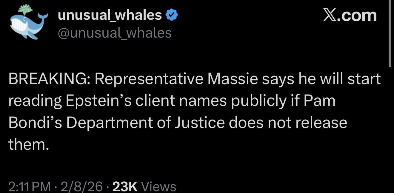 Massie is turning out to be the dark horse on this whole Epstein thing. We owe him respect, regardless of his political leanings in the last.