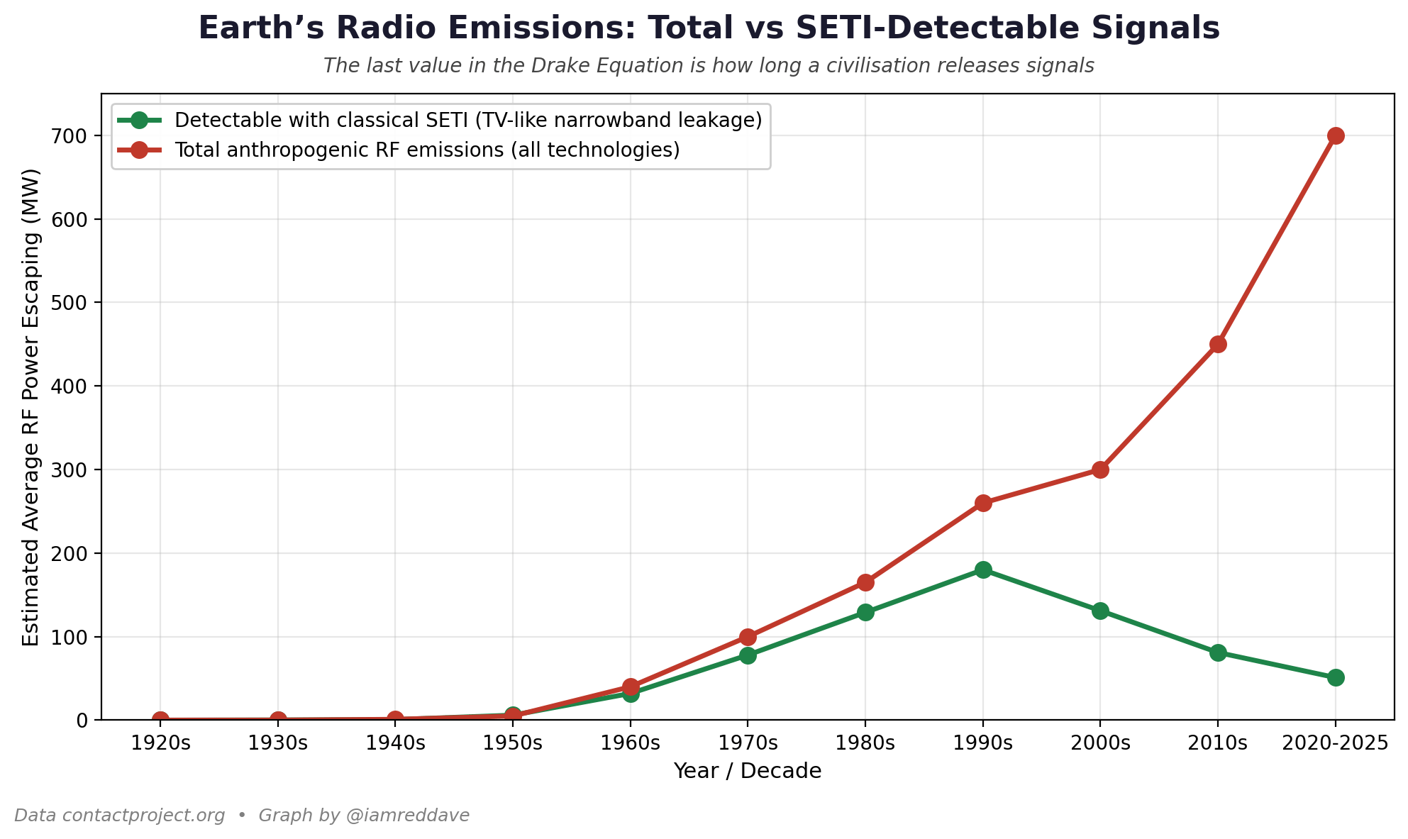 I remember reading that declines in Analog TV meant that we did not send out as much of the sort of Signals SETI detects as we used to.