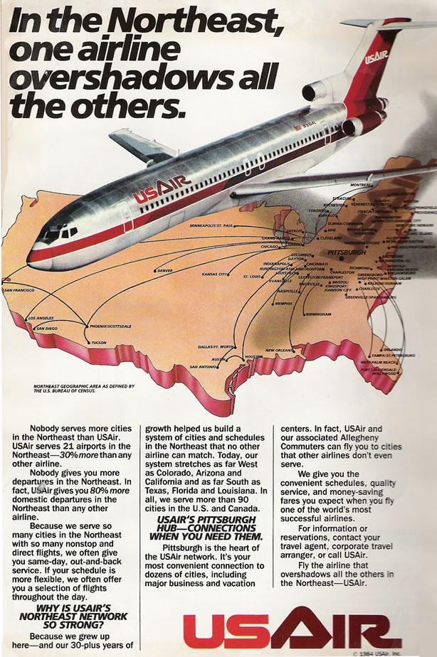 USAir – “In the Northeast, one airline overshadows them all the others.” (1984)
