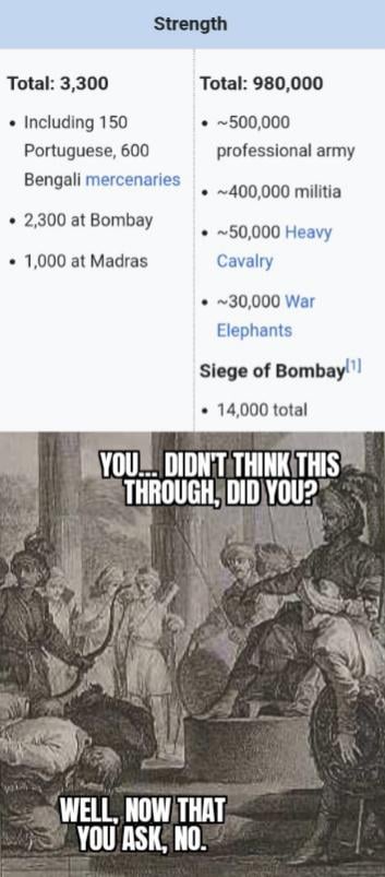 *Raids and captures ships going to mecca and makes it a war on religion, Mughals were muslim. They absolutely annihilate the brits*