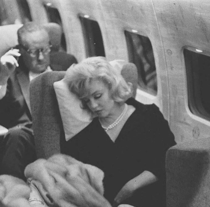 Marilyn Monroe asleep on a flight from NYC to Los Angeles, 1959
