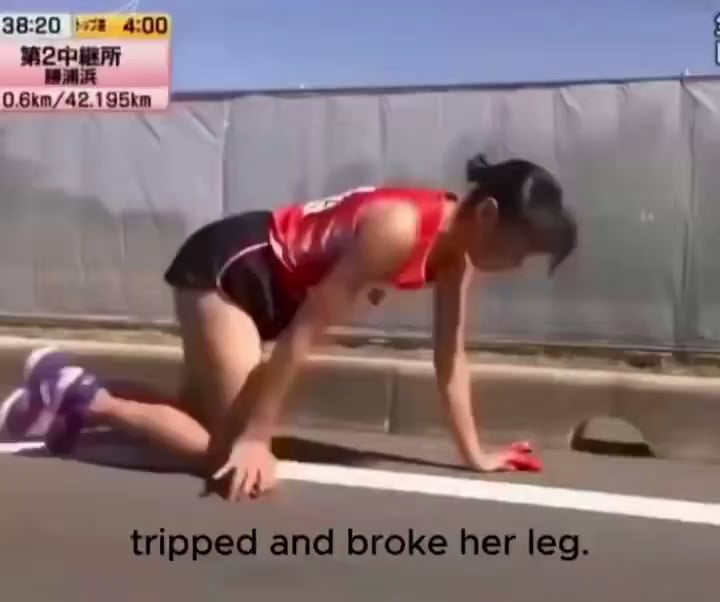 Japanese marathon runner Rei Iida showed incredible determination by crawling the final 300 meters after breaking her leg near the finish line, all to make sure her team could still compete.