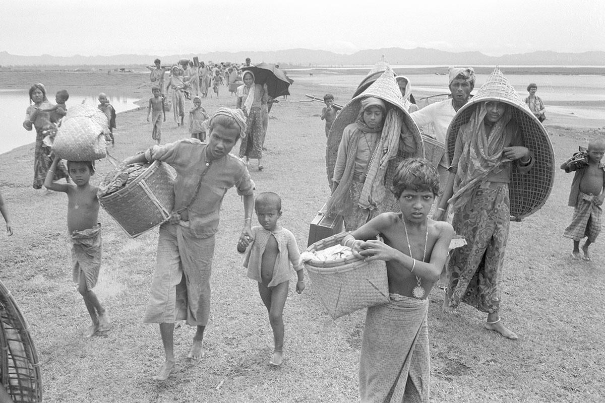 Rohingya refugees flee from Myanmar (then Burma) into Bangladesh in August 1978. They are carrying their few remaining belongings. [1200 x 800] by SirCrapsalot4267