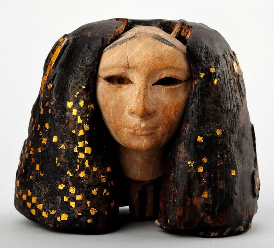 A portrait head of a princess from el-Lisht necropolis, now housed at the Egyptian Museum in Cairo. Wood and gilding, 12th Dynasty, reign of Amenemhat I, ca. 1991-1962 BCE [940×852]